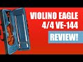 Violino em excelentes condições para quem quer iniciar os estudos, ou quer dar mais um passo nos estudos experimentando um violino ajustado. Violino Eagle já é uma boa referência de violino mais acessível, e com os ajustes, é um passo antes de pegar violinos artesanais de oficina ou luthiers. Qual o tamanho e idade indicada? Tamanho 4/4. Já indicado, dependendo da estrutura de cada pessoa, a partir os 11/12 anos. O que acompanha? Case para transporte, arco, breu, surdina de ferro (para estudos), espaleira. Qual a diferença em relação ao modelo VE441? Construção do fundo, melhor madeira usada nos componentes e melhor refinamento nas medidas. Como diminuir o volume do instrumento para estudar? Encaixando confiantemente a surdina por cima do cavalete (madeira no meio do violino que levanta as cordas). O violino vai montado e afinado? Sim. Violino vai pronto para uso, porém devido a temperatura e balançar do transporte o instrumento pode desafinar. Para questões de limpeza, armazenamento e cuidados diários, só entrar em contato conosco via Whatsapp. Aproveitem ;) Assistam o vídeo no final da galeria de fotos.
